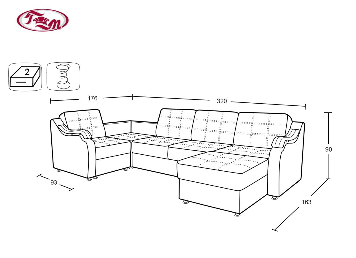 Габаритные размеры: 320х176, h90 см.