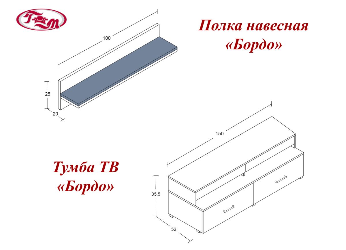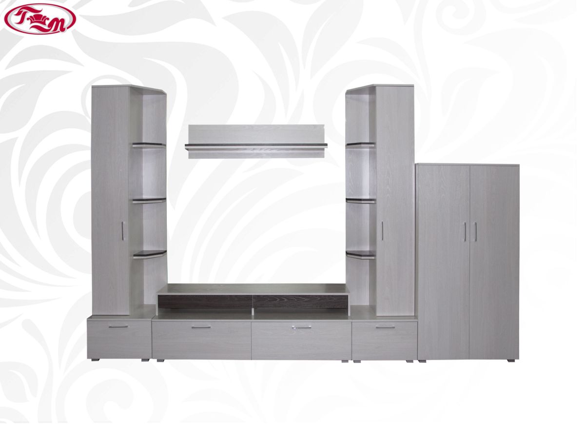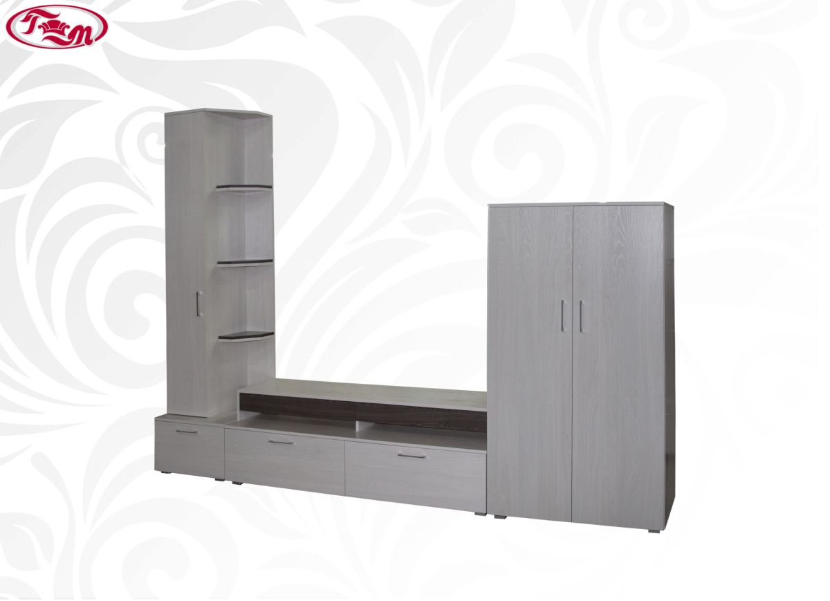 Состав: Пенал левый, тумба ТВ, полка навесная, пенал правый, шкаф для платья