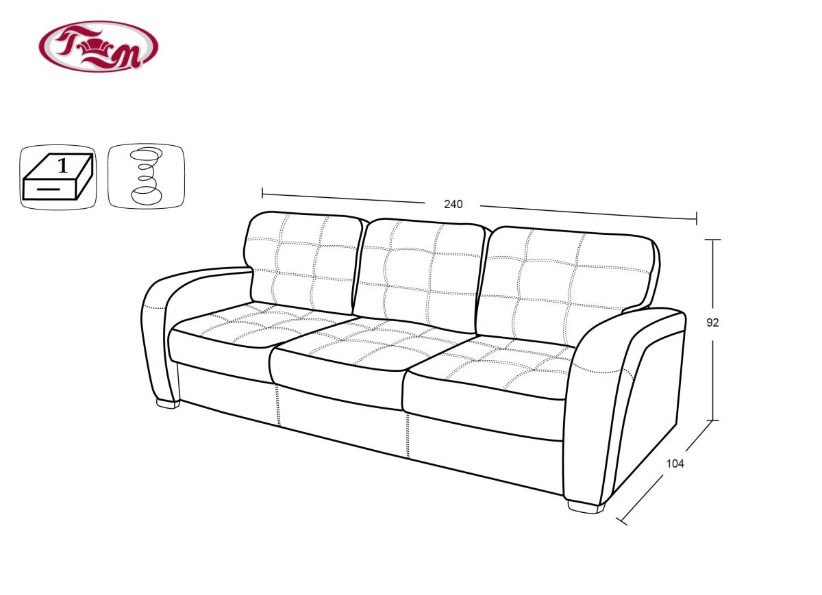 Габаритные размеры: 240х104, h72 по спинке, h92 по подушкам