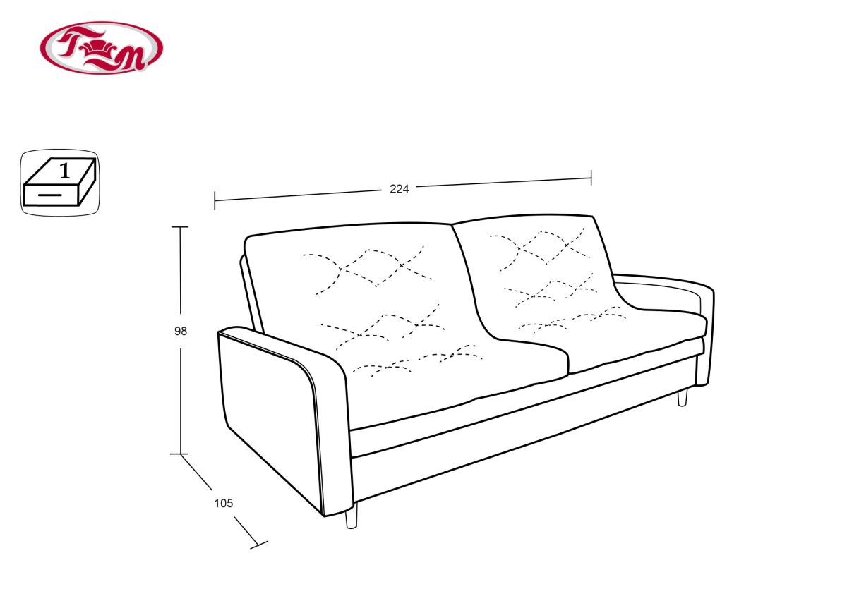 Габаритные размеры: 224х105, h98 см.; h ножки 12 см.