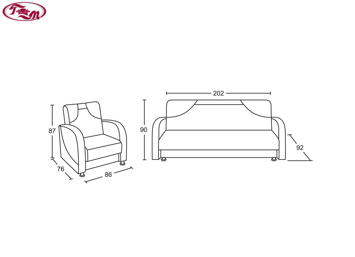 Габаритные размеры дивана: 202х92, h88 см.