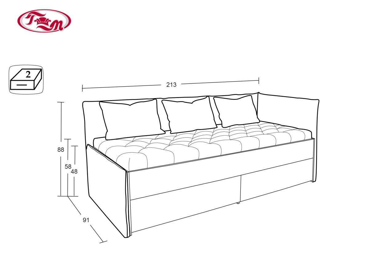 Габаритные размеры: 91 х 213, h88 по спинке, h посадочного места с матрасиком 58 см, h корпуса 48 см