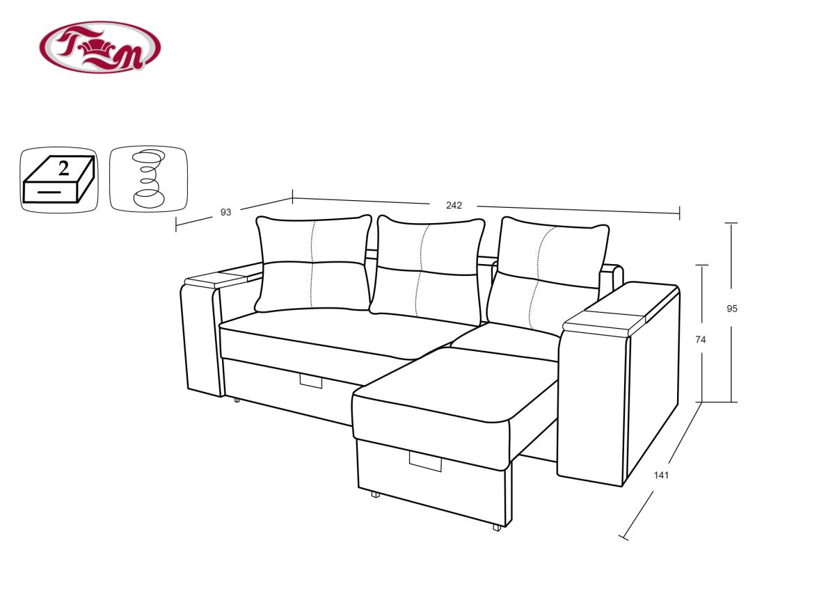Габаритные размеры: 242х142, h74 по спинке, h95 по подушкам