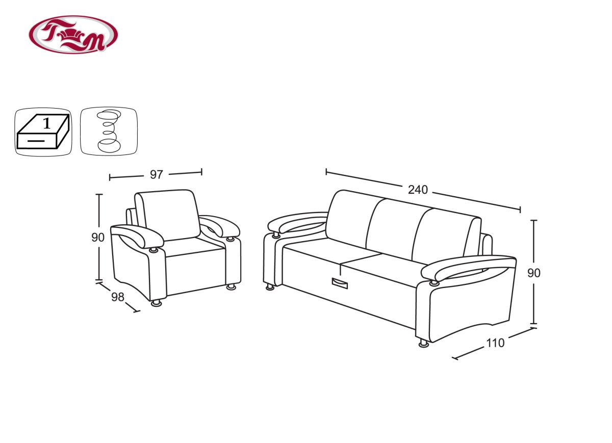 Габаритные размеры дивана: 240х110, h90 см.