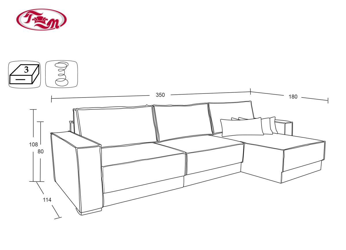 Габаритные размеры: 350 х 180, h80 см. по спинке, h108 см. по подушкам, h посадочного места 48 см.