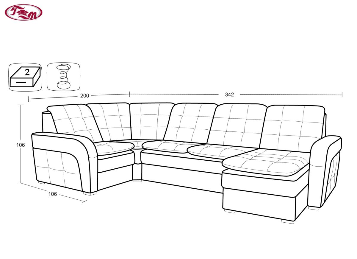 Габаритные размеры: 342х200, h106 см.