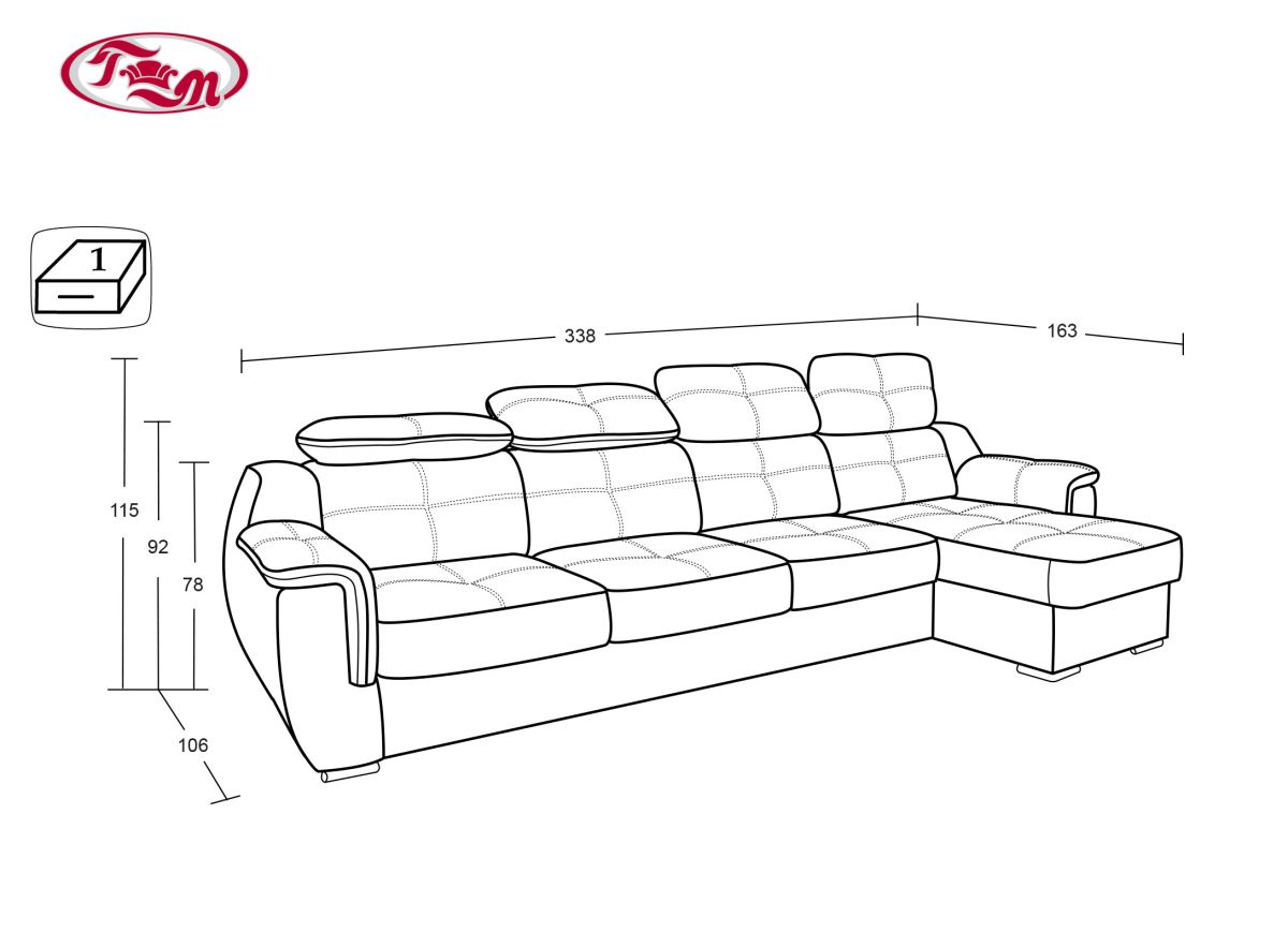 Габаритные размеры: 338х163, h78 по спинке, h92 с подушкой в горизонтальной фиксации, h115 с подушкой в вертикальной фиксации.