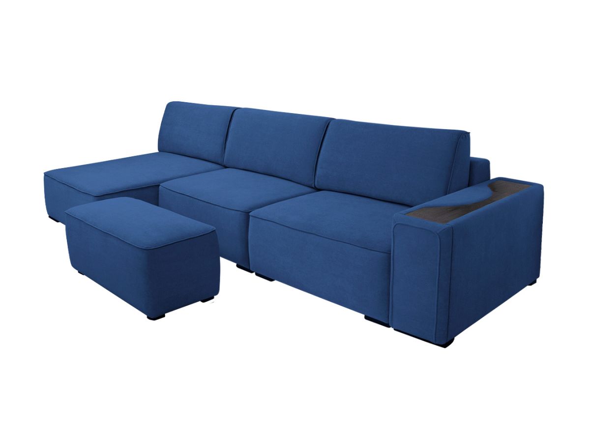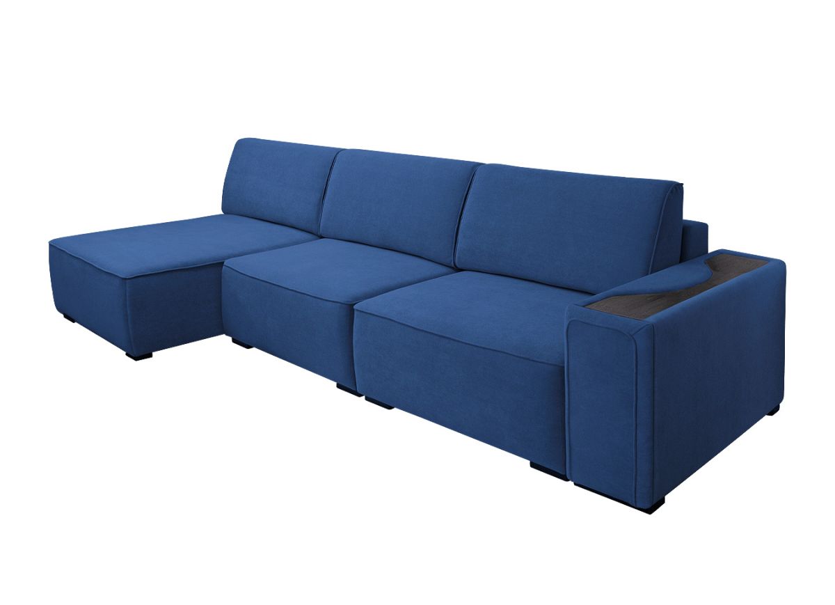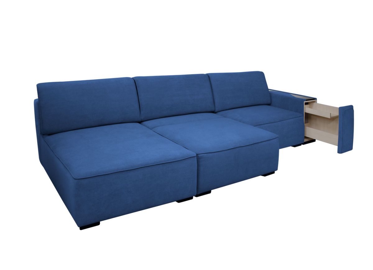 натуральное дерево на широком подлокотнике, широкий подлокотник с выкатным ящиком и с полкой, ножки из натурального дерева.