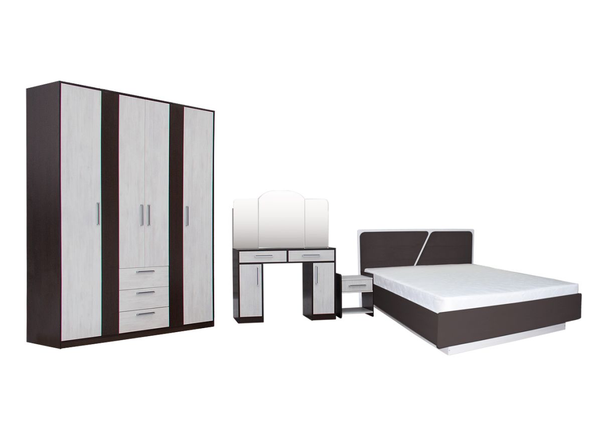 кровать 1,6 с механизмом подъёма, матрацем и ортопедическим основанием; тумба прикроватная; туалетный столик; шкаф плательный