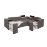 накладки на подлокотниках из натурального дерева, подлокотник с выдвижным столиком и подлокотник с выдвижными ящиками, в спинке угловой части 2 ящика для хранения